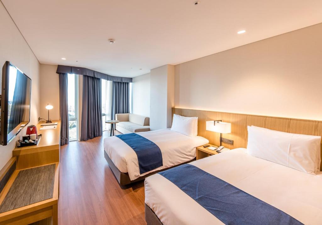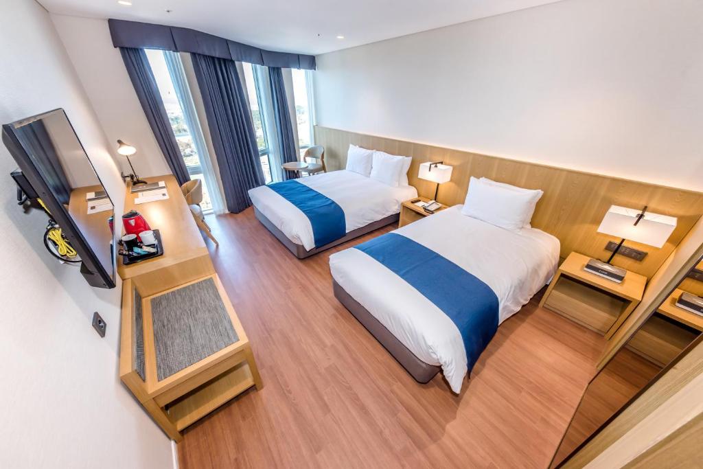 Located in the heart of Downtown Jeju, Hotel Sirius offers a convenient and luxurious stay for travelers visiting Jeju, South Korea. Getting to the hotel from the nearest airport is a breeze, ensuring a seamless start to your vacation.